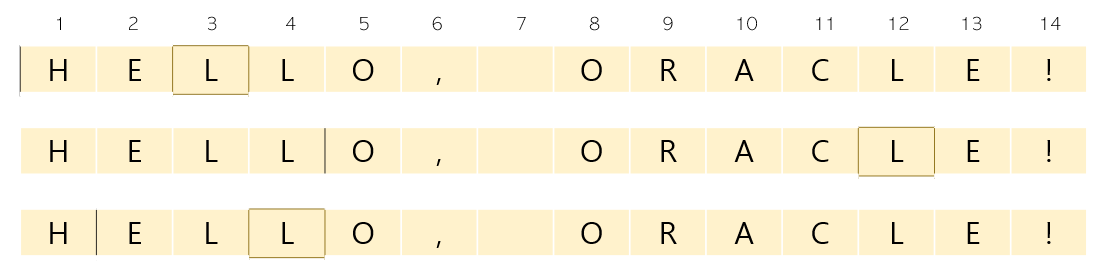 (2) INSTR('HELLO, ORACLE!', 'L', 5) : 12